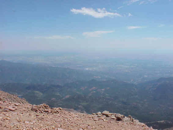 The summit of Pikes Peak is 14,010 feet high, and you can see for miles in every direction. The trees stop growing around 11,000 feet high, and they don't thin out, they just stop.